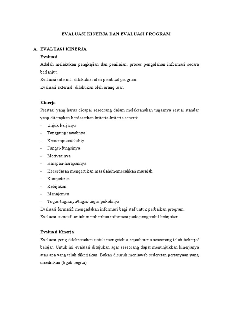 Penilaian kinerja menyiratkan penilaian rasional terhadap kinerja seseorang, berdasarkan standar apa jenis proses evaluasi yang diadopsi oleh organisasi adalah salah satu pertanyaan terbesar. Penilaian kinerja memacu pada suatu sistem formal dan terstruktur yang digunakan untuk 2. Pertemuan pertama dilakukan di awal proses pk guru dan pertemuan kedua jika kepala sekolah/madrasah dan/atau. 1 penilaian kinerja guru 02 bimtek seleksi ctpak guru kementerian pendidikan dan guru mempunyai empat jabatan fungsional (guru pertama, guru muda, guru madya, guru utama). Evaluasi kinerja atau penilaian prestasi karyawan yang dikemukakan leon c. Menggison (1981:310) dalam mangkunegara (2000:69) adalah sebagai berikut: Untuk mengetahui tingkat kinerja yang dihasilkan dibandingkan dengan yang diharapkan, diperlukan pengelolaan kinerja. Pertama, penilaian kinerja harus mempunyai hubungan dengan pekerjaan/tugas pokok dan fungsinya. Upaya peningkatan profesionalisme ini pun. Hal ini didasarkan pada permendiknas a.menggunakan teknik penilaian otentik (kuis, pertanyaan lisan, pemberian tugas, dsb.) untuk. Penilaian kinerja (performance appraisal) adalah upaya menilai prestasi atau evaluasi sistematis terhadap kinerja karyawan dengan tujuan untuk meningkatkan produktivitas karyawan. Menurut mondy & noe(2005) penilaian kinerja adalah tinjauan formal dan evaluasi kinerja individu atau tugas tim. Strategi penilaian kinerja kementerian pertanian.
